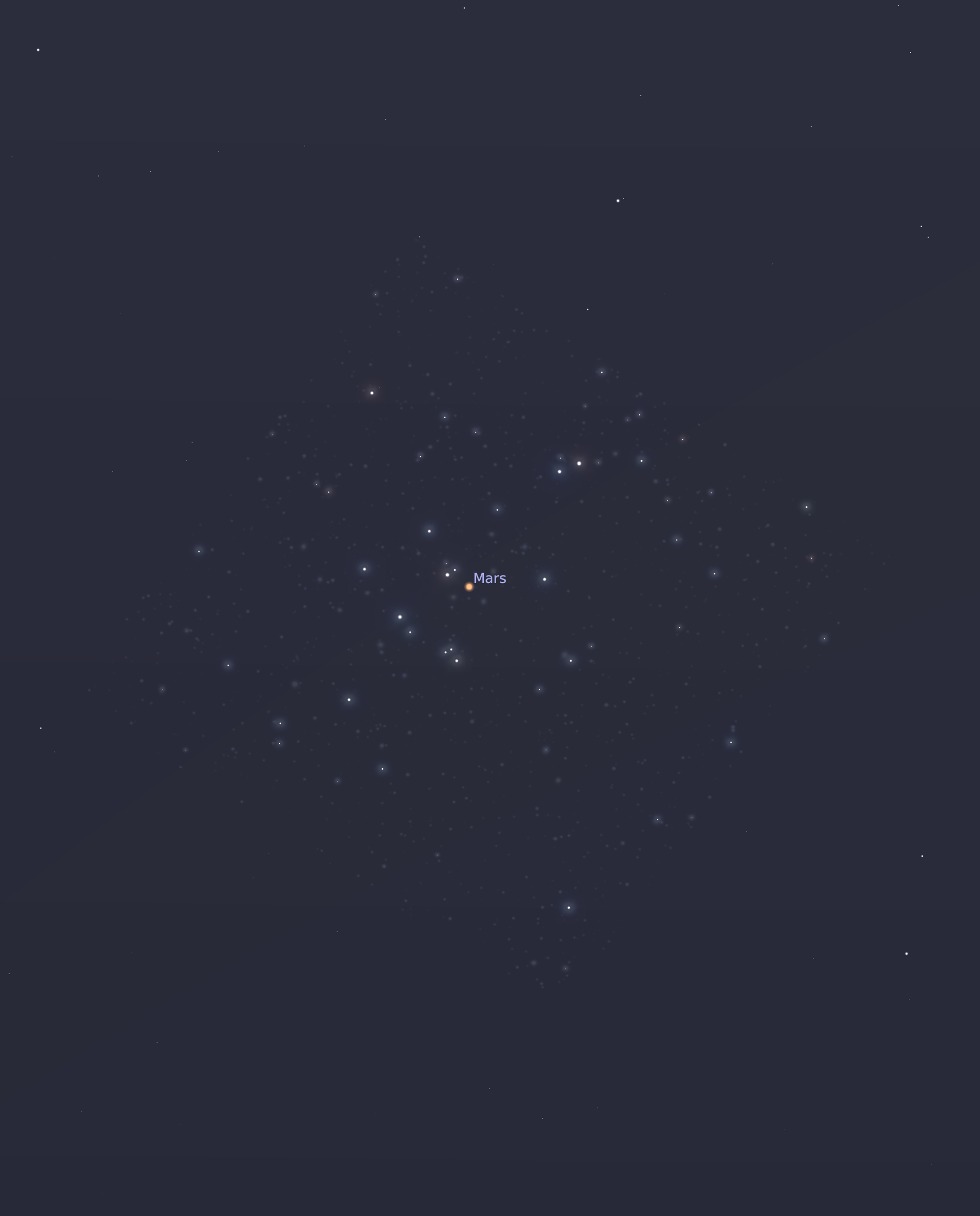 Ďalšia krásna konjunkcia nastane 23. júna, no pozorovať ju budeme môcť i v okolitých dňoch. Tentokrát sa planéta Mars dostane nie len do priamej blízkosti, ale doslova z nášho pohľadu do stredu hviezdokopy Jasličky (Beehive cluster). Konjunkcia bude viditeľná tesne nad obzorom po západe Slnka.