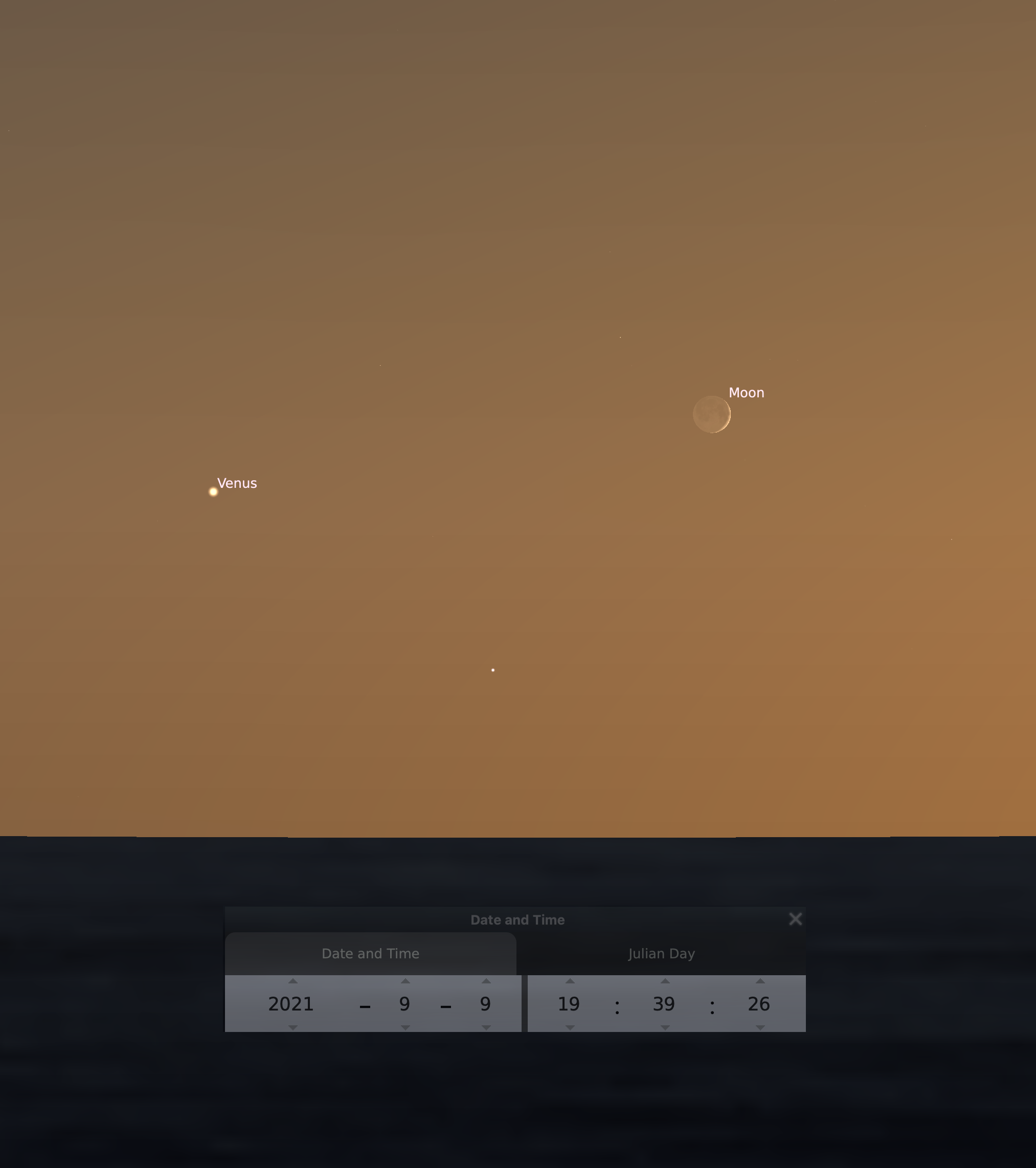 Prvá zaujímavá konjunkcia nastane 9. septembra hneď po západe Slnka. Vtedy sa tenučký kosáčik mladého Mesiaca dostane do blízkosti jasnej Venuše. Ak nám to však počasie neumožní, nemusíme ešte zúfať. Hneď na druhý deň sa Mesiac dostane o čosi vyššie na oblohe a k Venuši to stále bude iba „na skok“.