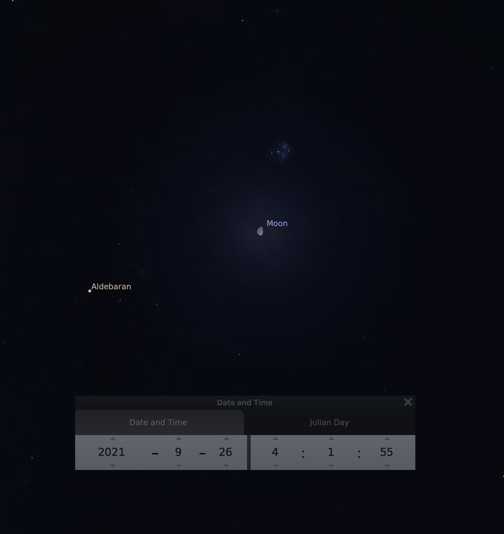Poslednou zaujímavou konjunkciou v septembri nebude blízke stretnutie Mesiaca a planét. Nebeské stretnutie sa z pohľadu našich očí odohrá medzi dvoma otvorenými hviezdokopami, ktoré bez problémov nájdeme aj na mestami prežiarenej oblohe. Plejády a Hyády budú 26. septembra nadránom viditeľné v sprievode ubúdajúceho Mesiaca.